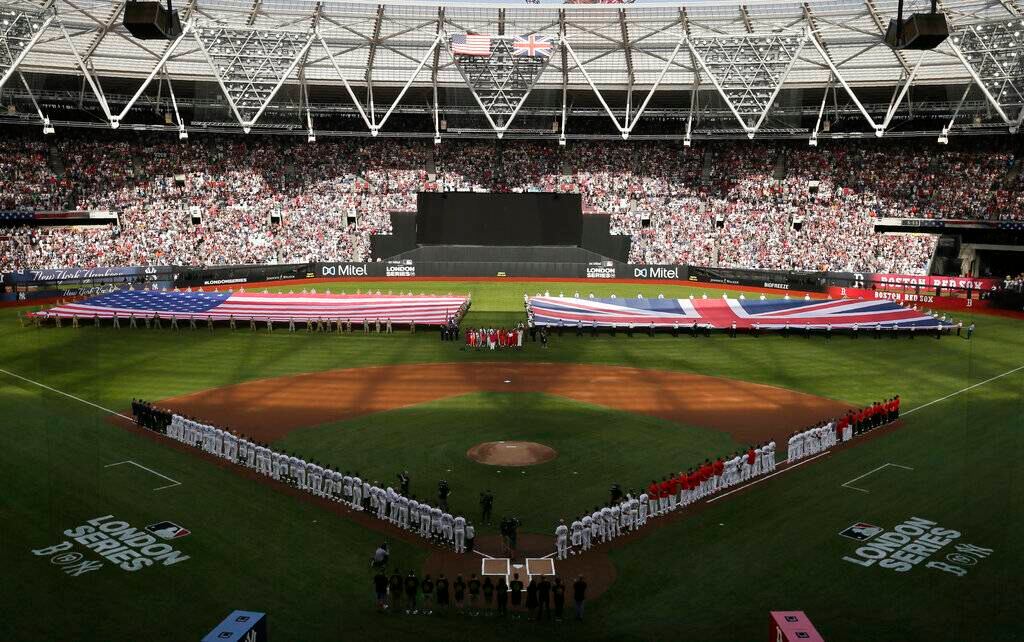 Las Grandes Ligas llegaron el sábado a Europa, con un tremendo festival de bateo. Cada equipo anotó seis carreras en un primer inning que duró casi una hora.