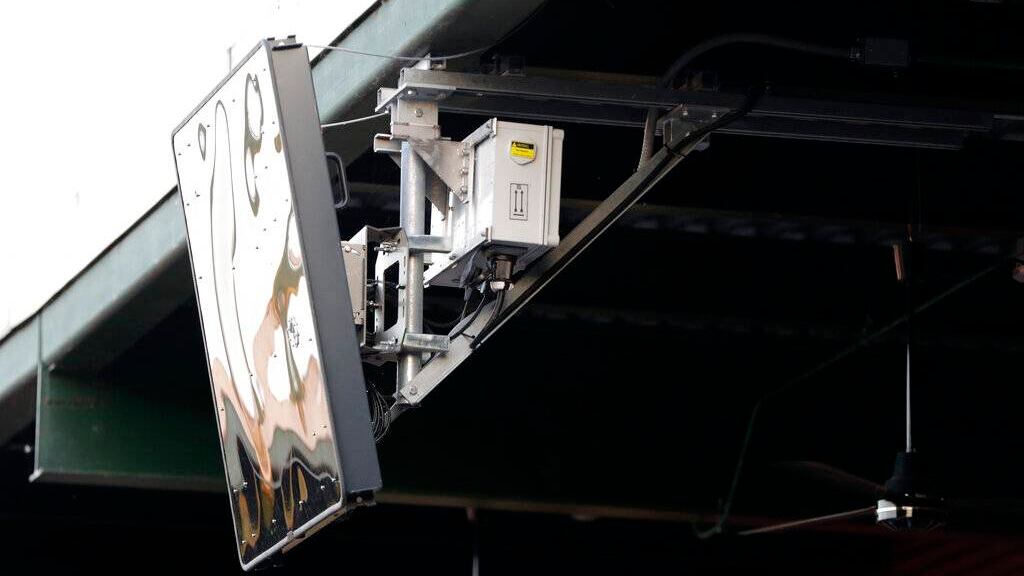 Unos 45 minutos antes del primer lanzamiento, el locutor del parque pidió que los fanáticos notaran una pantalla negra que colgaba del techo detrás del plato. Dijo en broma que podían culpar a la computadora de cualquier decisión que les desagradara.