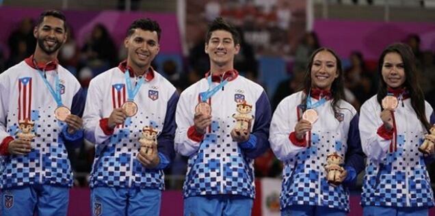 El equipo de Puerto Rico en poomsae, taekwondo Arelis Medina, Fabiola Ruiz, Bryan Rivera, Luis Colón y Miguel Rivera, lograron medalla de bronce, en los Juegos Panamericanos 2019 en Lima, Perú.