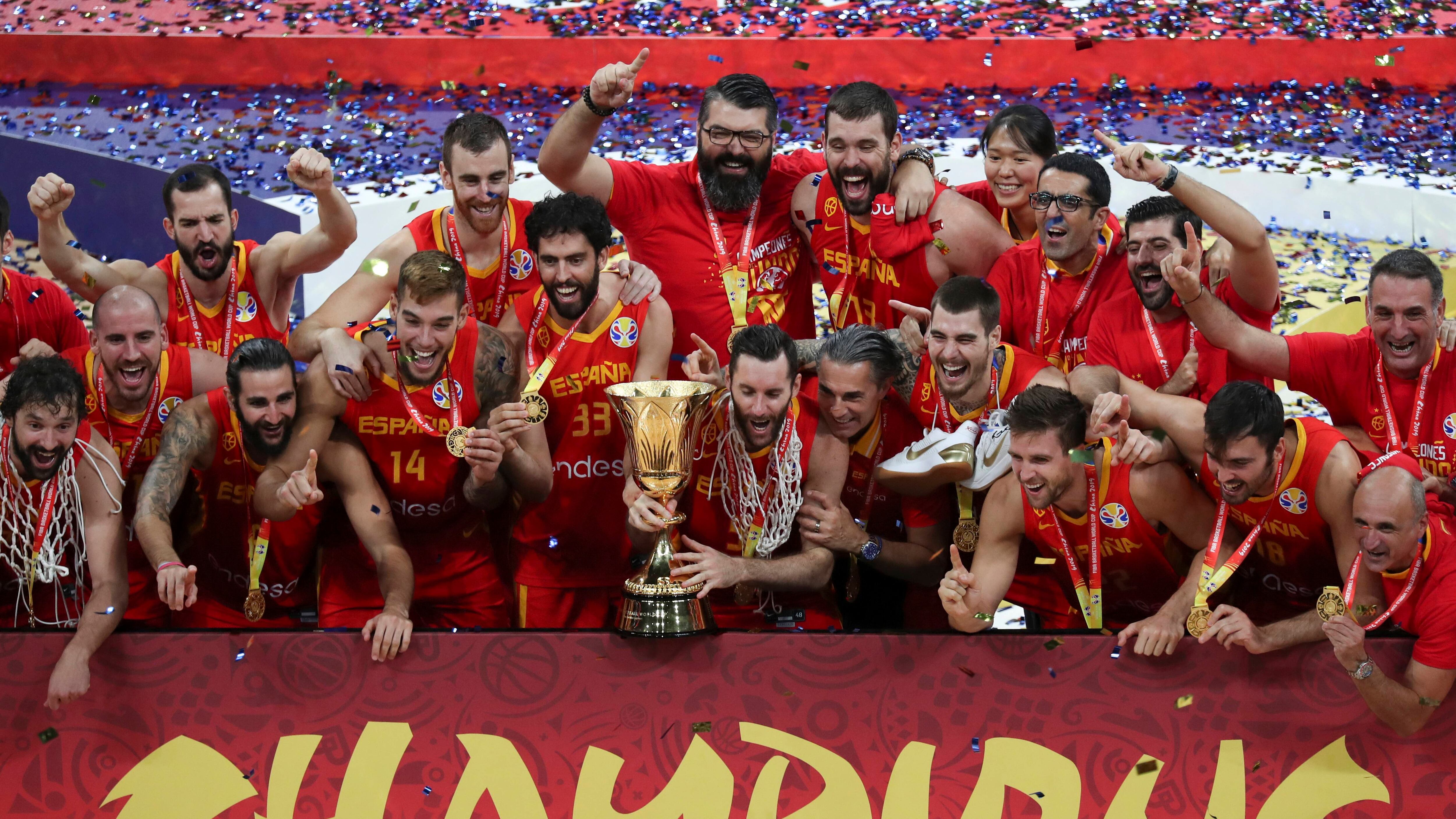 Lull y Rudy Fernández —el capitán que recibió el Trofeo Naismith— acudieron a recortar las redes de las cestas después del timbrazo final. Gasol llevó el balón con el que se disputó el partido a la ceremonia de premiación.