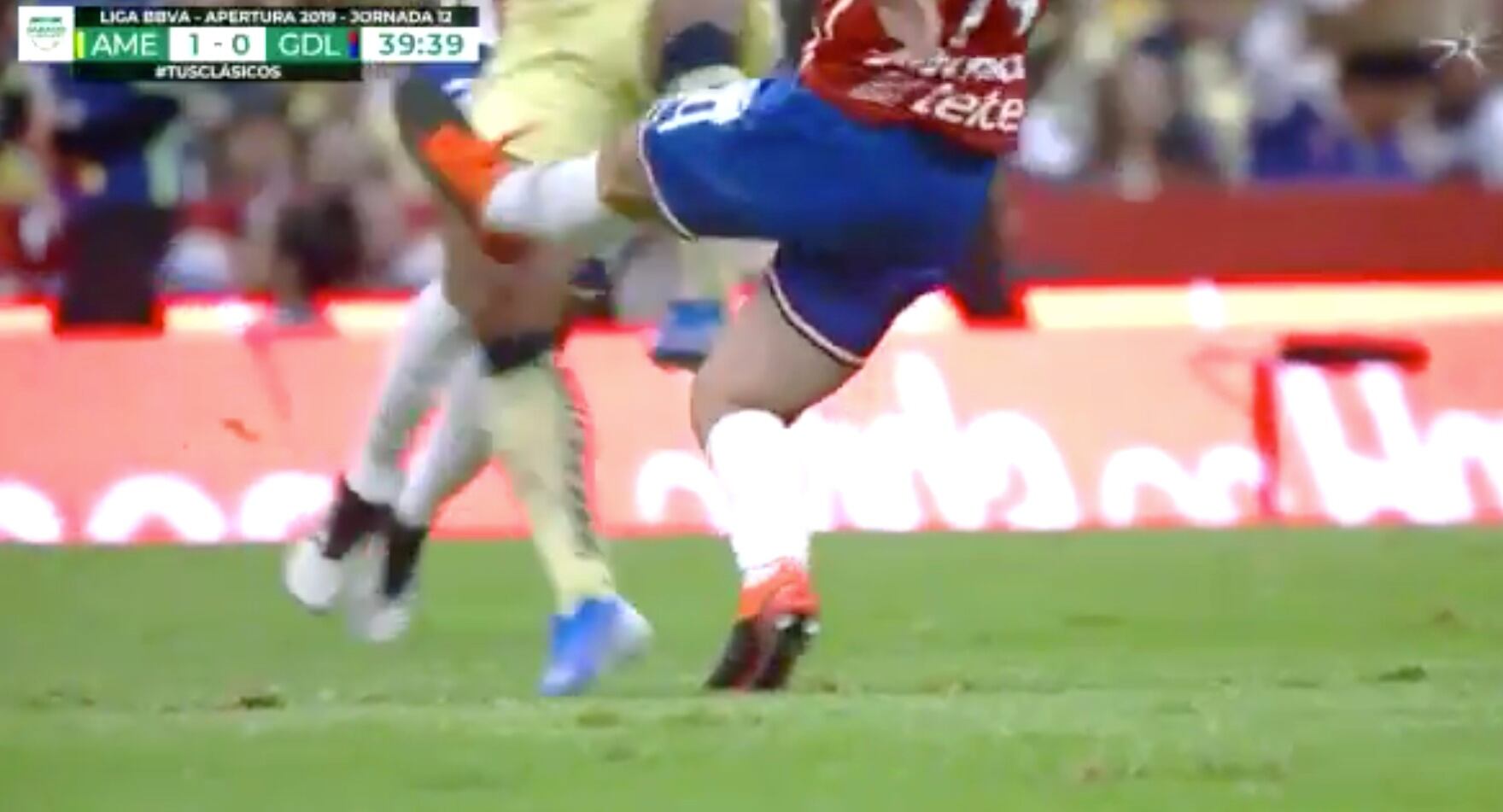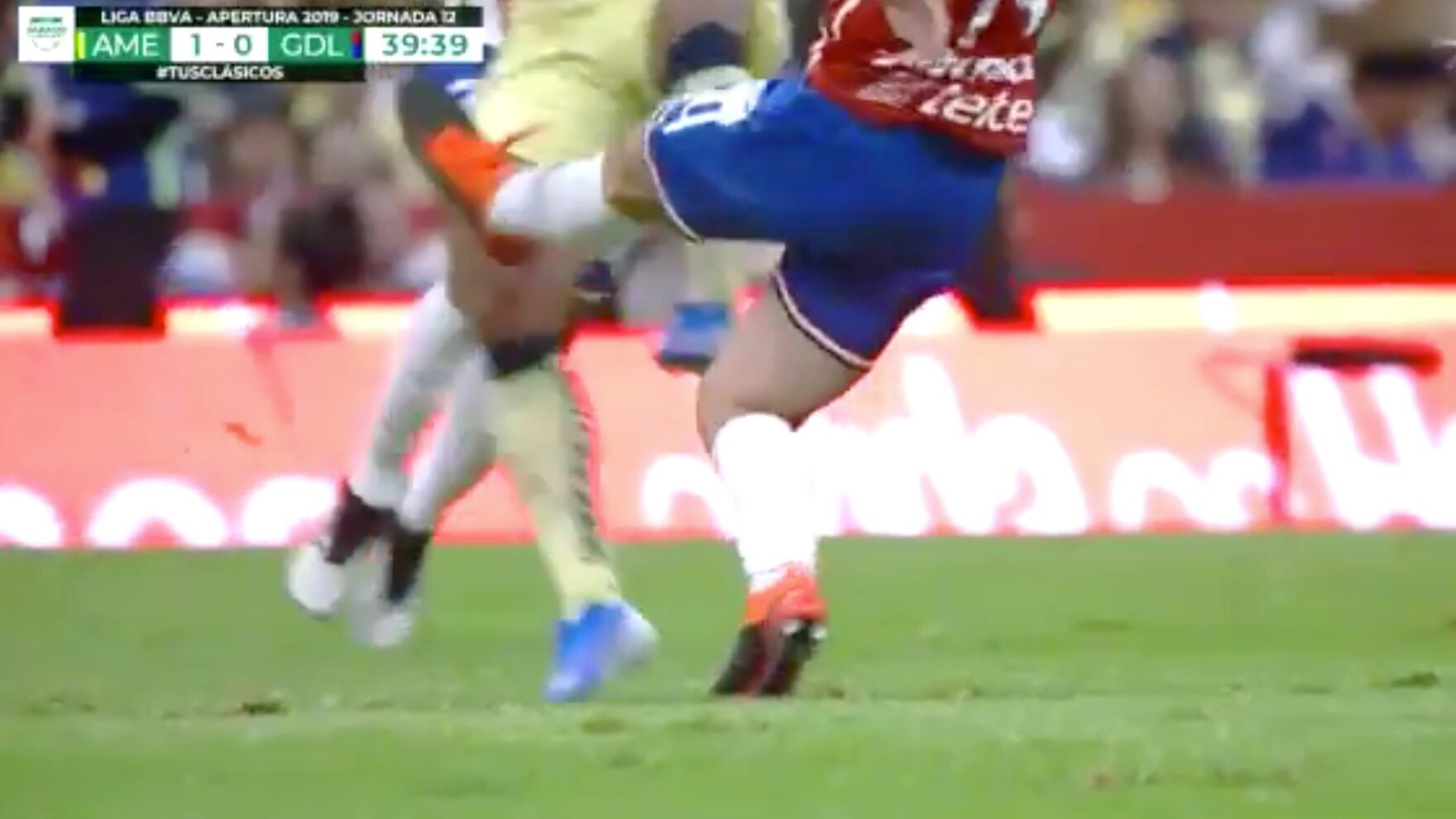 Antonio Briseño cometió el peor error de su estancia en Chivas y es que de manera inexplicable llegó con tanta fuerza que realizó una entrada con uno de sus tachones en la pierna de Giovani dos Santos, generándole una herida profunda y dejando al Guadalajara con 10 hombres, porque el silbante Fernando Guerrero lo expulsó del duelo ante América en el Clásico nacional.