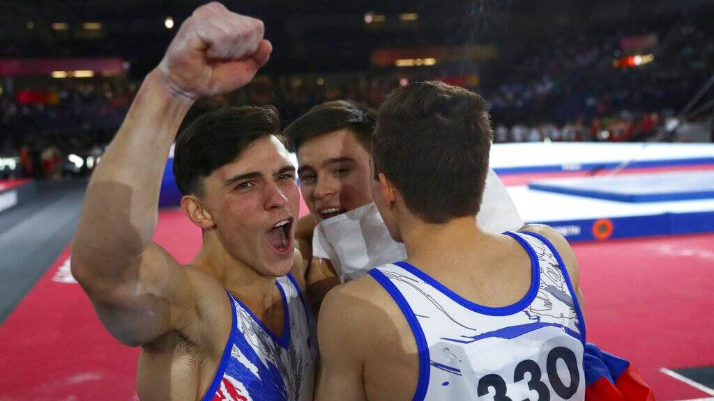 Ivan Stretovich, Artur Dalaloyan y Nikita Nagornyy completaron sólidas rutinas en la barra de equilibrio para que Rusia totalizara una puntuación de 261.726. Eso alcanzó para aventajar por apenas a 0.997 a los chinos, que se habían proclamado campeones de la prueba de equipos masculina en siete de los últimos campeonatos del mundo.