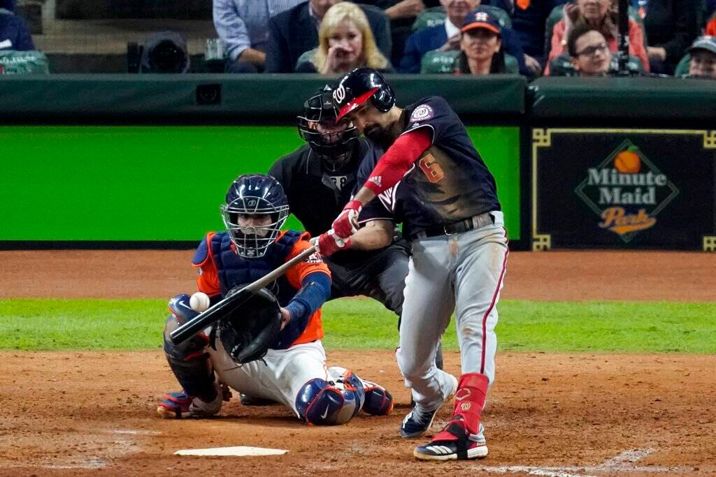 Rendón mandó un lanzamiento con cambio de velocidad a las tribunas detrás del jardín izquierdo, un cuadrangular solitario con un out en el séptimo inning, y Washington inició su quinta, última y más famosa remontada en un partido sin margen para la derrota este año. El desenlace fue una victoria de 6-2 sobre los Astros que le dio a la franquicia su primer título en sus 51 temporadas de existencia.