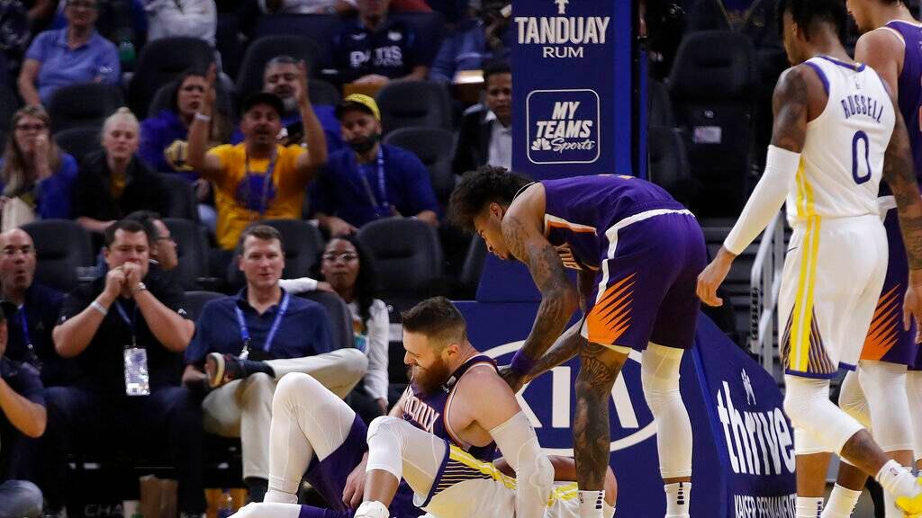 Curry, nombrado dos veces el Jugador Más Valioso de la NBA, avanzó hacia a su izquierda mientras Kelly Oubre Jr. intentaba detenerlo y con el pívot Aron Baynes plantado firmemente en la pintura. Curry saltó con el balón y luego se fue de bruces al piso, cayendo descompuesto sobre sus manos para protegerse.