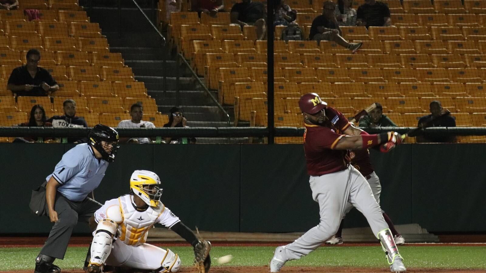 En la entrada de la suerte, Aldemar Burgos pegó kilométrico cuadrangular por todo el bosque izquierdo para marcar la segunda vuelta del encuentro.