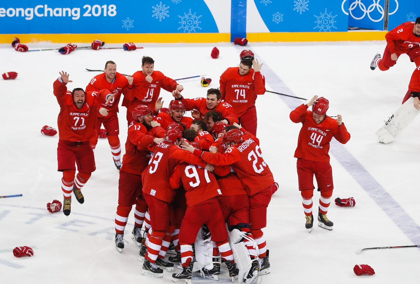 Cuando el equipo masculino de hockey ganó la medalla de oro en uniformes que hacían recordar a los de los jugadores de la “Máquina Roja” de la Unión Soviética, los jugadores entonaron el himno nacional, aun sin música. El presidente ruso Vladimir Putin llamó al entrenador que estaba en la banca y lo felicitó.