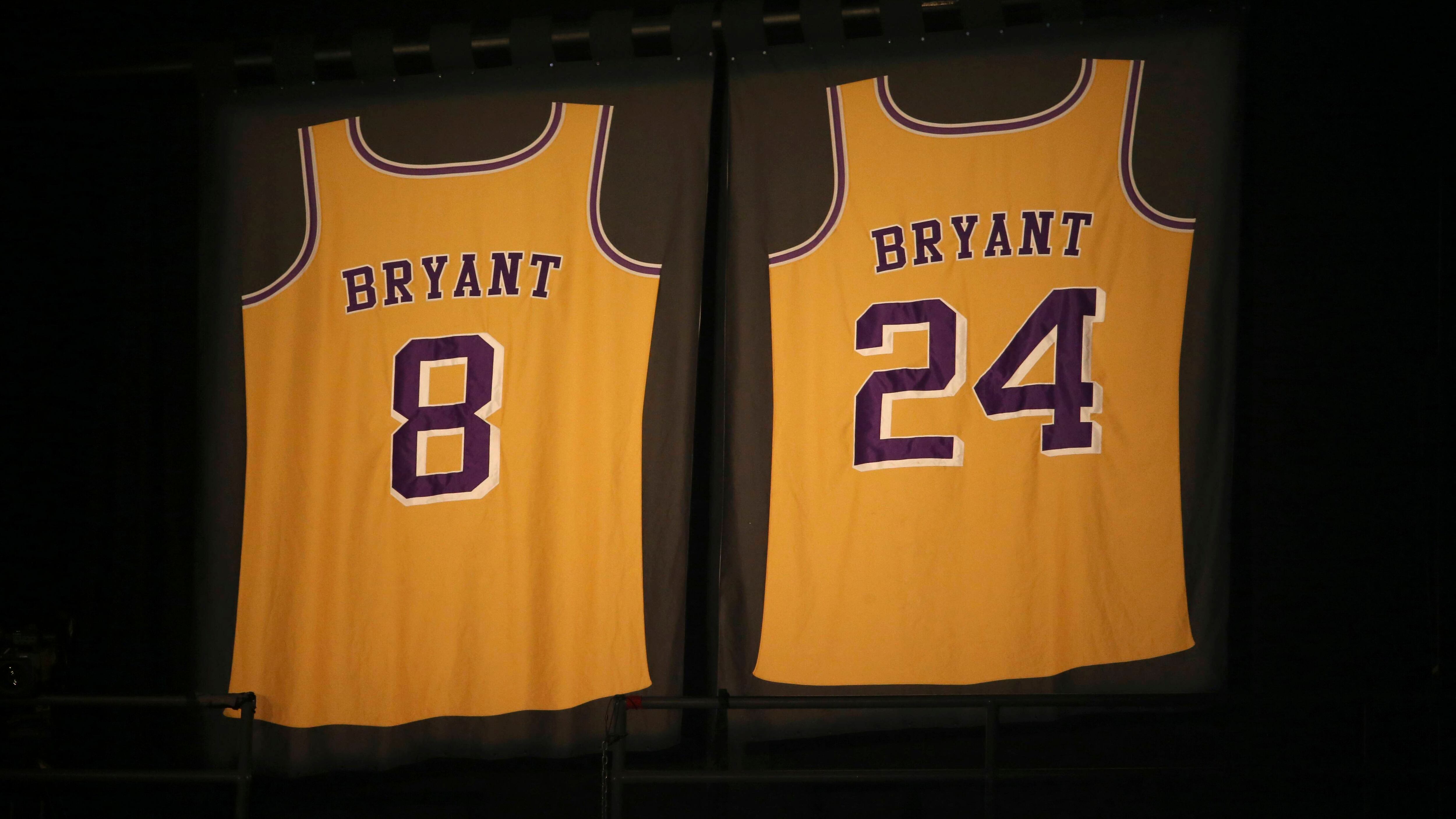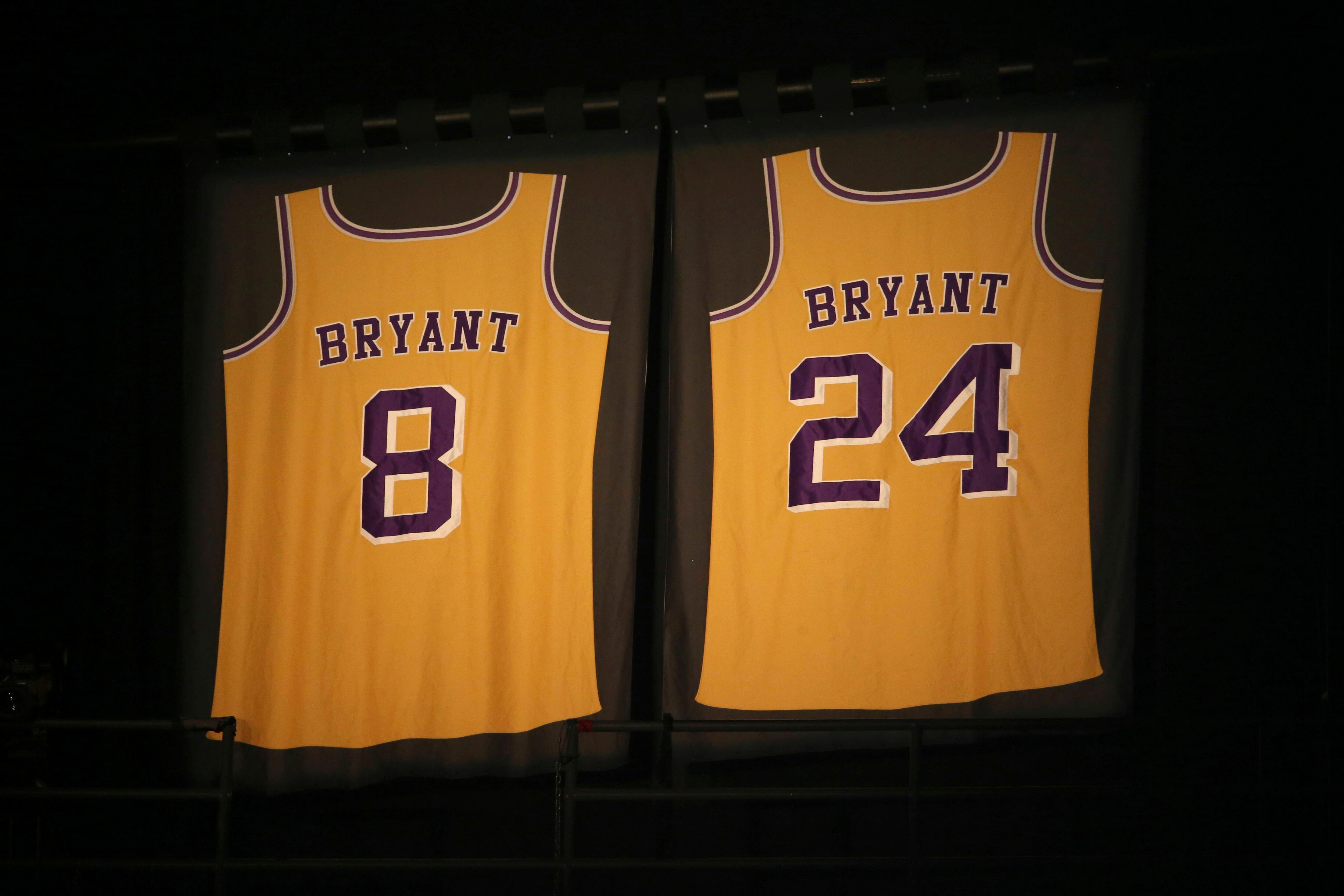 Además del logo, los Lakers colocaron camisetas con el número 8 y 24, de Kobe Bryant, para que todo el público que asista al partido las utilice.