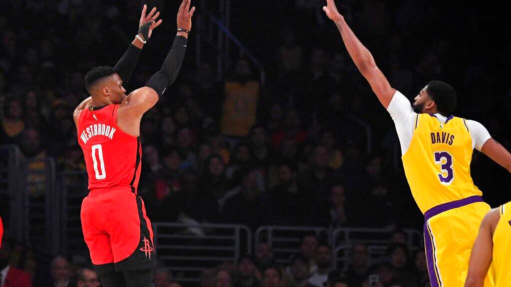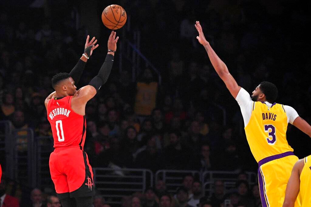 Russell Westbrook anotó 41 puntos, Robert Covington encestó dos tardíos triples en su debut con los Rockets de Houston que fueron clave para su victoria el jueves por 121-111 sobre los Lakers de Los Ángeles.