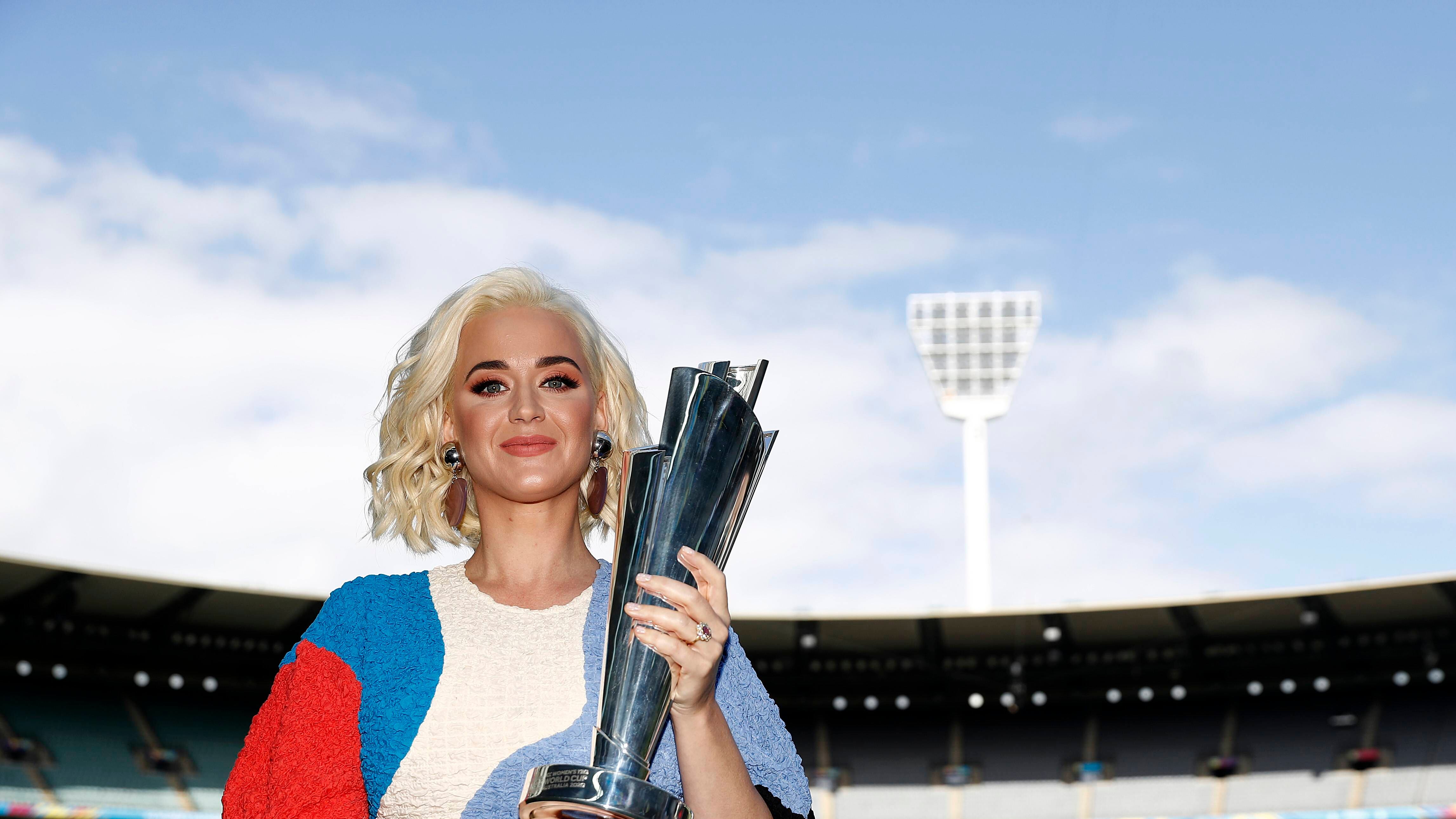 Mediante redes sociales, Katy compartió una serie de fotografías en el Melbourne Cricket Ground, recinto que albergará la final de la justa, en donde Australia enfrentará a La India el 8 de marzo, fecha que se eligió para celebrar el Día Internacional de la Mujer.
