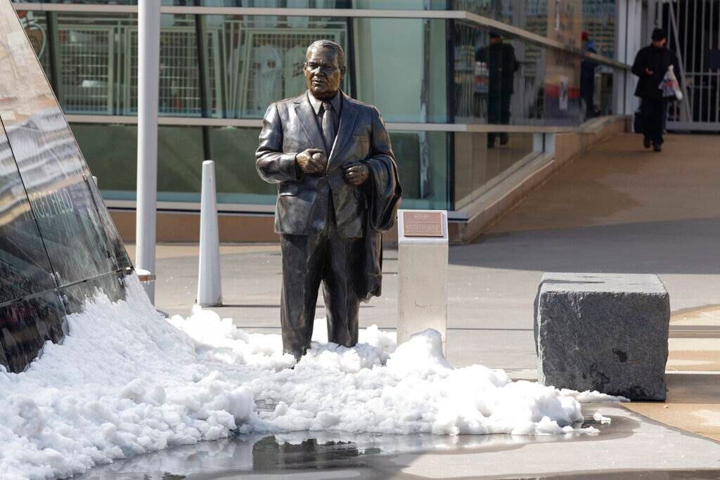 La estatua de Griffith era una de varias que fueron instaladas por el equipo para la reapertura del estadio en 2010.