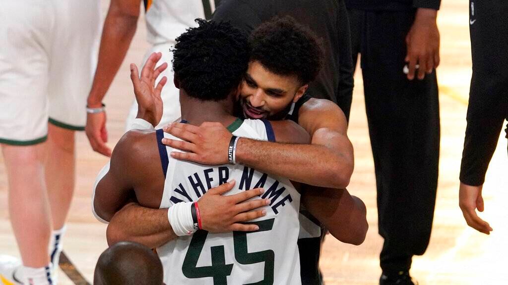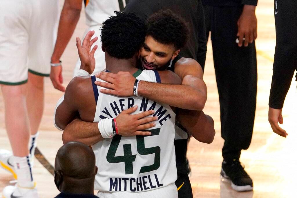 Jamal Murray consoló a Donovan Mitchell, tan apesadumbrado por la derrota que se desplomó en la cancha. Lo ayudó para que se marchara y le dio un abrazo.