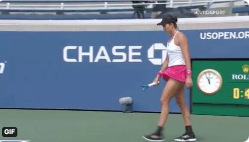 La española Garbiñe Muguruza fue eliminada en la segunda ronda del US Open por la búlgara Tsvetana Pironkova y fue tanta su frustración que se desquitó con su raqueta y la hizo pedazos.