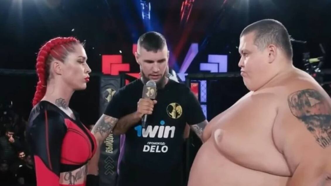 Insólito y bizarro. La luchadora profesional de MMA Darina Madzyuk, de 63 kilos, aceptó un desafío que le hicieron a través de redes sociales y disputó un combate con el youtuber Grigory Chistyakov, de 240 kilos.
