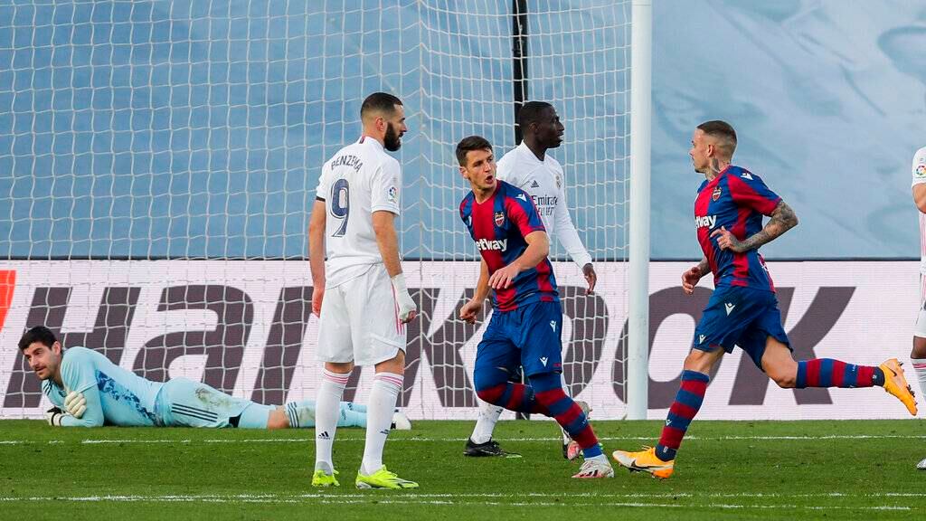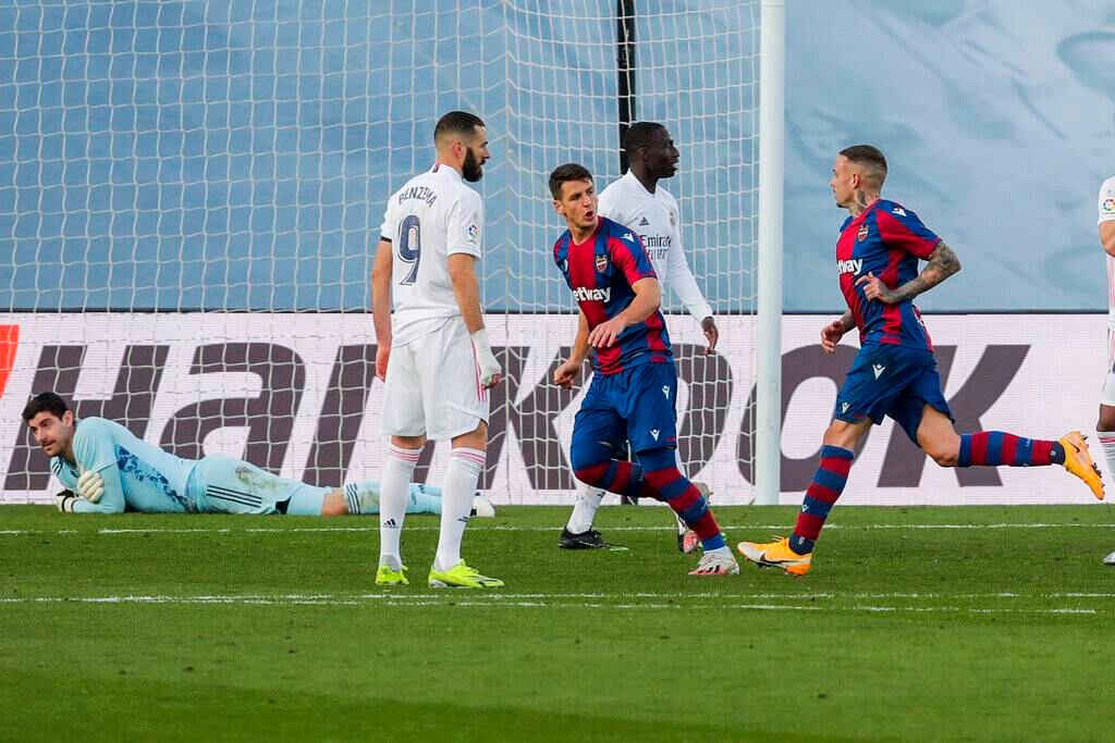 El Real Madrid continúa en caída libre dentro de La Liga, después de caer de manera sorpresiva 2-1 ante el Levante, que se aleja de los puestos de descenso.