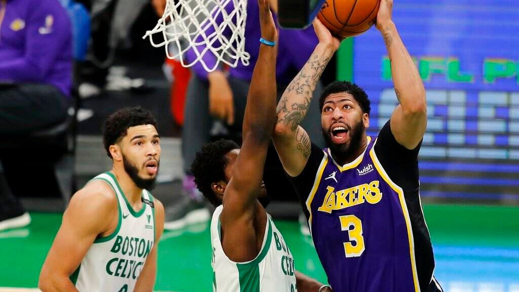 Anthony Davis totalizó 27 puntos y 14 rebotes en su retorno a la alineación, y los Lakers de Los Ángeles preservaron apenas la ventaja para superar el sábado 96-95 a los Celtics de Boston.