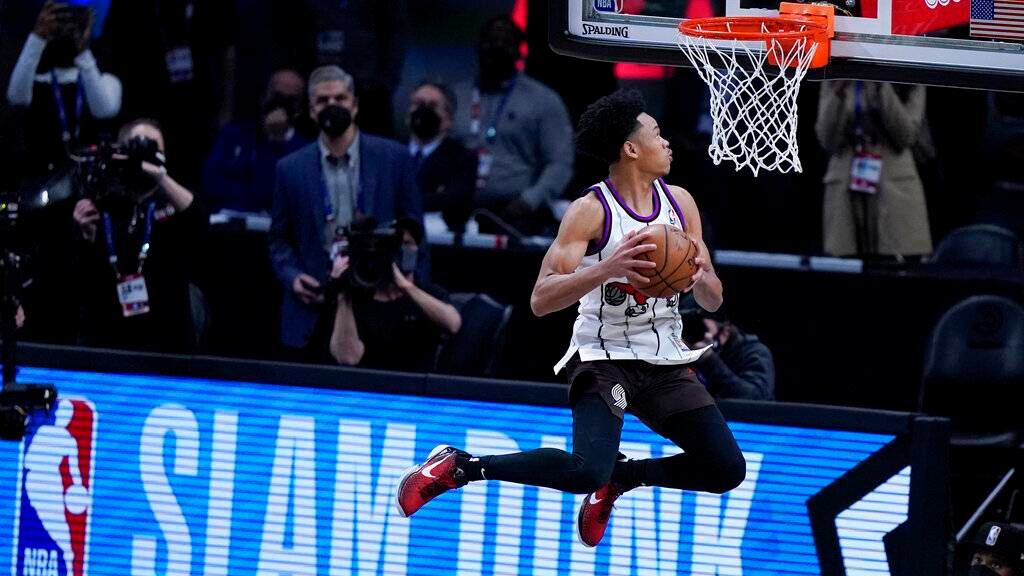 Posteriormente, Anfernee Simons, de Portland, selló su última clavada ganadora con un beso. Bueno, casi.