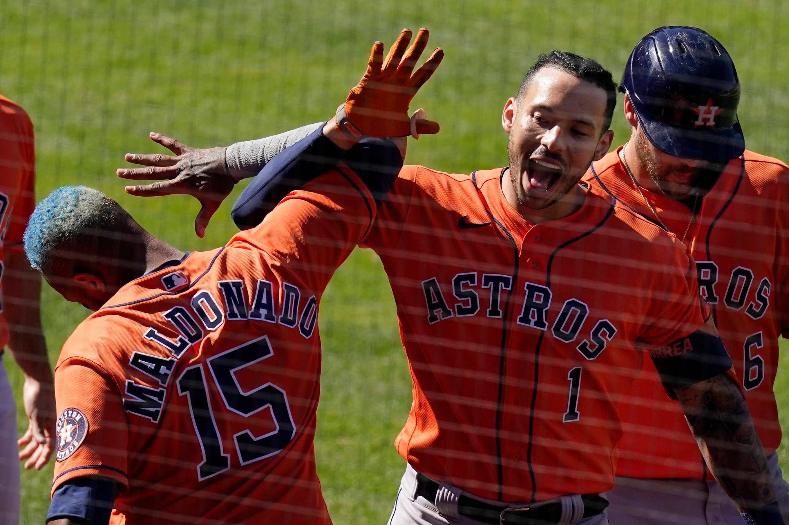 Kyle Tucker y el cubano Aledmys Díaz batearon vuelacercas seguidos en el segundo inning por los Astros, que han comenzado la temporada de una manera impresionante, con una foja de 5-1 en su gira de seis encuentros, en medio de los incesantes abucheos de los fanáticos rivales, quienes les reprochan el escándalo de robo de señales en las temporadas de 2017 y 18.