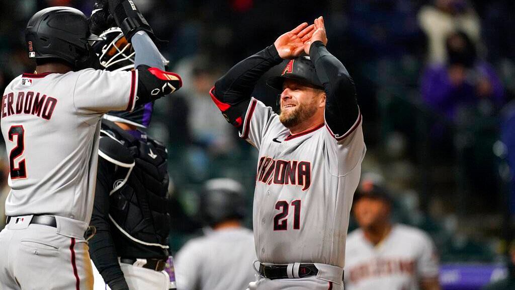 Stephen Vogt jonroneó y pegó un sencillo decisivo en el 13er inning, y los Diamondbacks de Arizona se recuperaron de los tres vuelacercas de Ryan McMahon para derrotar 10-8 el martes a los Rockies de Colorado, en un juego demorado por la nieve.