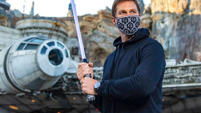 Con todo y su mascarilla, Brady visitó la sección temática de Star Wars de Walt Disney World con su familia y amigos el lunes, dos meses después de llevar a los Bucs a ganar el Super Bowl ante los Chiefs.