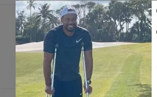 El golfista estadounidense Tiger Woods publicó este viernes una foto en su red social de Instagram en la que aparece con muletas y sonriendo en el jardín de la residencia que posee en Jupiter (Florida).