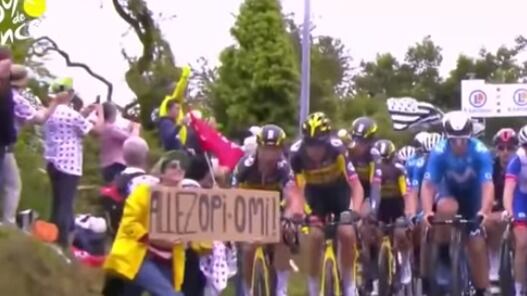 La presencia de espectadores al borde de las rutas y ciudades para ver el paso de los ciclistas forma parte de la tradición y encanto del Tour. La mujer que provocó el incidente lo hizo con un cartel con la frase “Allez Opi-Omi”, una mezcla de cariñosos términos franco-germanos que aluden a los abuelos — “Vamos Abuelo-Abuela”.