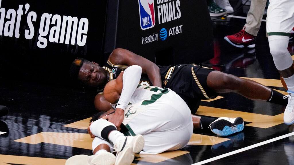 Pero en la siguiente jugada, Williams trabajó una pantalla con Clint Capela, quien buscó una clavada que Antetokounmpo intentó impedir. El astro de los Bucks cayó descompuesto sobre la cadera, se sujetó la rodilla izquierda y el silencio invadió la arena.