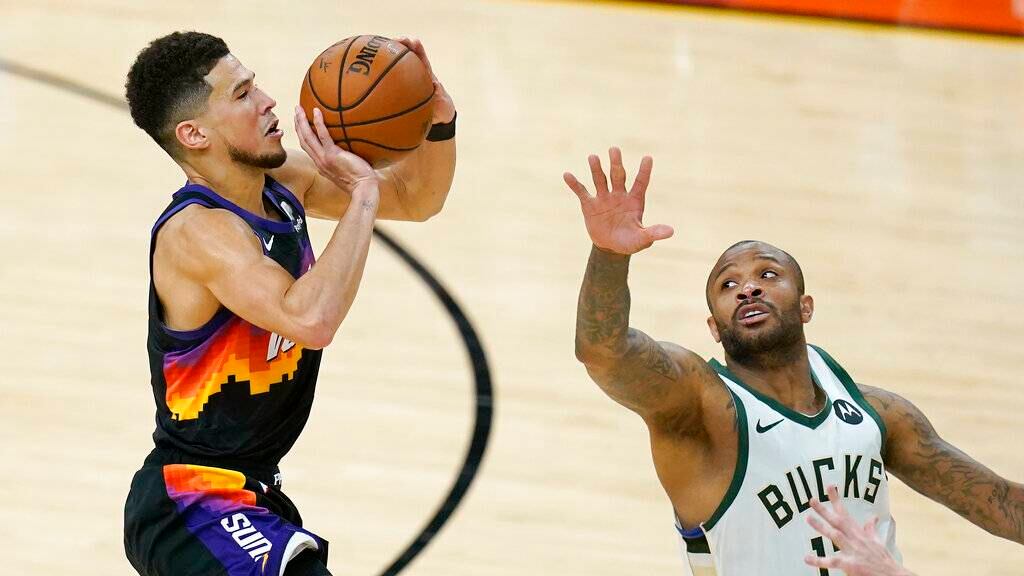 Devin Booker anotó 31 puntos, Chris Paul aportó 23 tantos y los Suns derrotaron el jueves 118-108 a los Bucks de Milwaukee para tomar ventaja de 2-0 en las Finales.