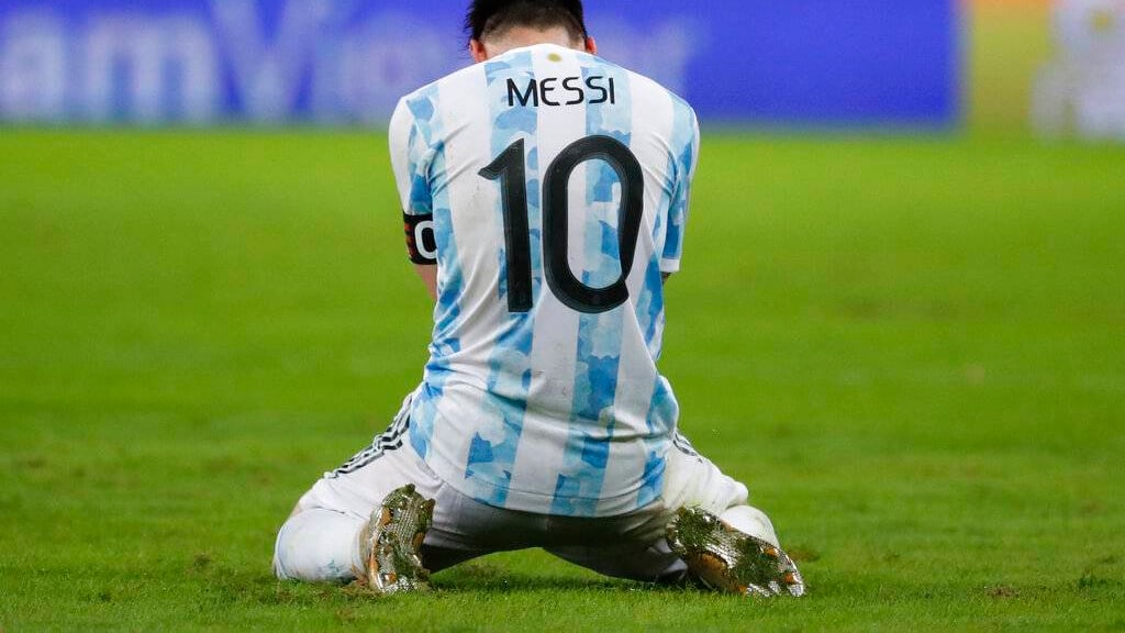Tras el pitazo final del árbitro uruguayo Esteban Ostojich, Messi se arrodilló en el piso y se cubrió la cara con las manos. El calvario con la Albiceleste se había terminado.
