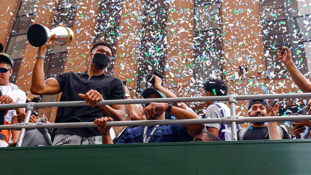 Miles de aficionados formaron una valla en las calles del centro de Milwaukee el jueves para festejar con sus queridos Bucks en un desfile por el primer título de la NBA de la ciudad en 50 años.
