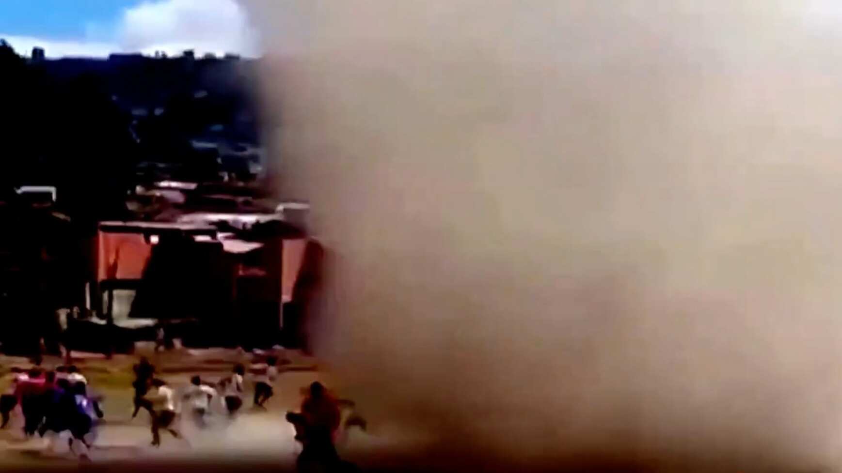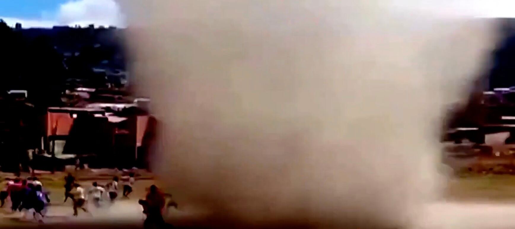 Todo iba completamente normal en un partido de fútbol amateur en Bolivia, cuando de pronto, un remolino se hizo presente en la cancha, levantando arena y obligando a todos a salir del campo de juego.