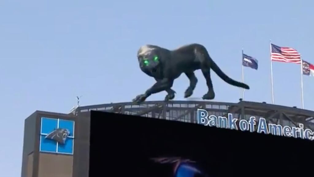 Pero lo que se robó el show en el partido fue la enorme y espectacular pantera virtual que apareció en el Bank Of America Stadium que maravilló a los televidentes y asistentes.