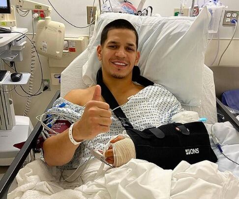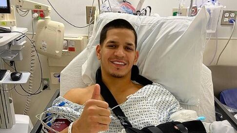 El boxeador boricua Edgar Berlanga, compartió hoy una imagen desde el hospital, donde se recupera de una cirugía en su bíceps izquierdo.