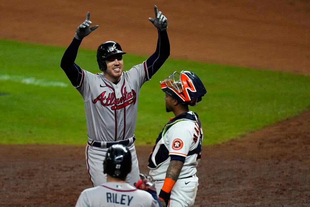 En la séptima entrada, Freeman pegó sólido por todo el jardín central y se fue sobre la verja para poner el juego 7-0. Freeman, el primera base de los Bravos, consiguió su sexto cuadrangular durante los playoffs con lo que igualó a un jugador histórico de la franquicia, Fred McGriff, quien logró esa marca en 1996.