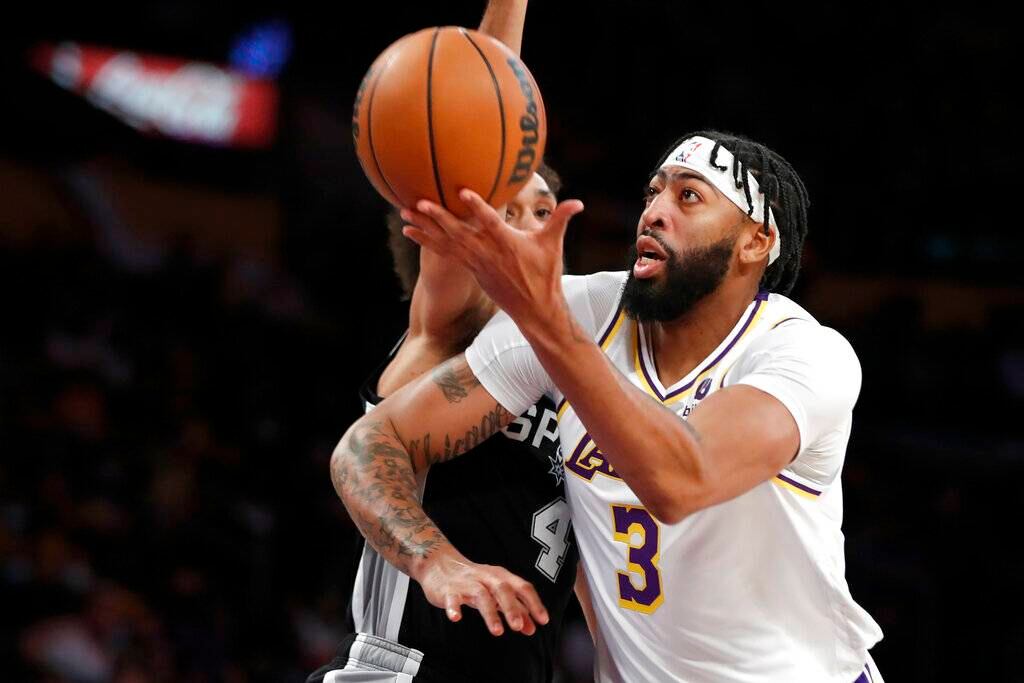 Anthony Davis registró 34 puntos y 15 rebotes para ayudar a los Lakers de Los Ángeles a vencer el domingo 114-106 a los Spurs de San Antonio.