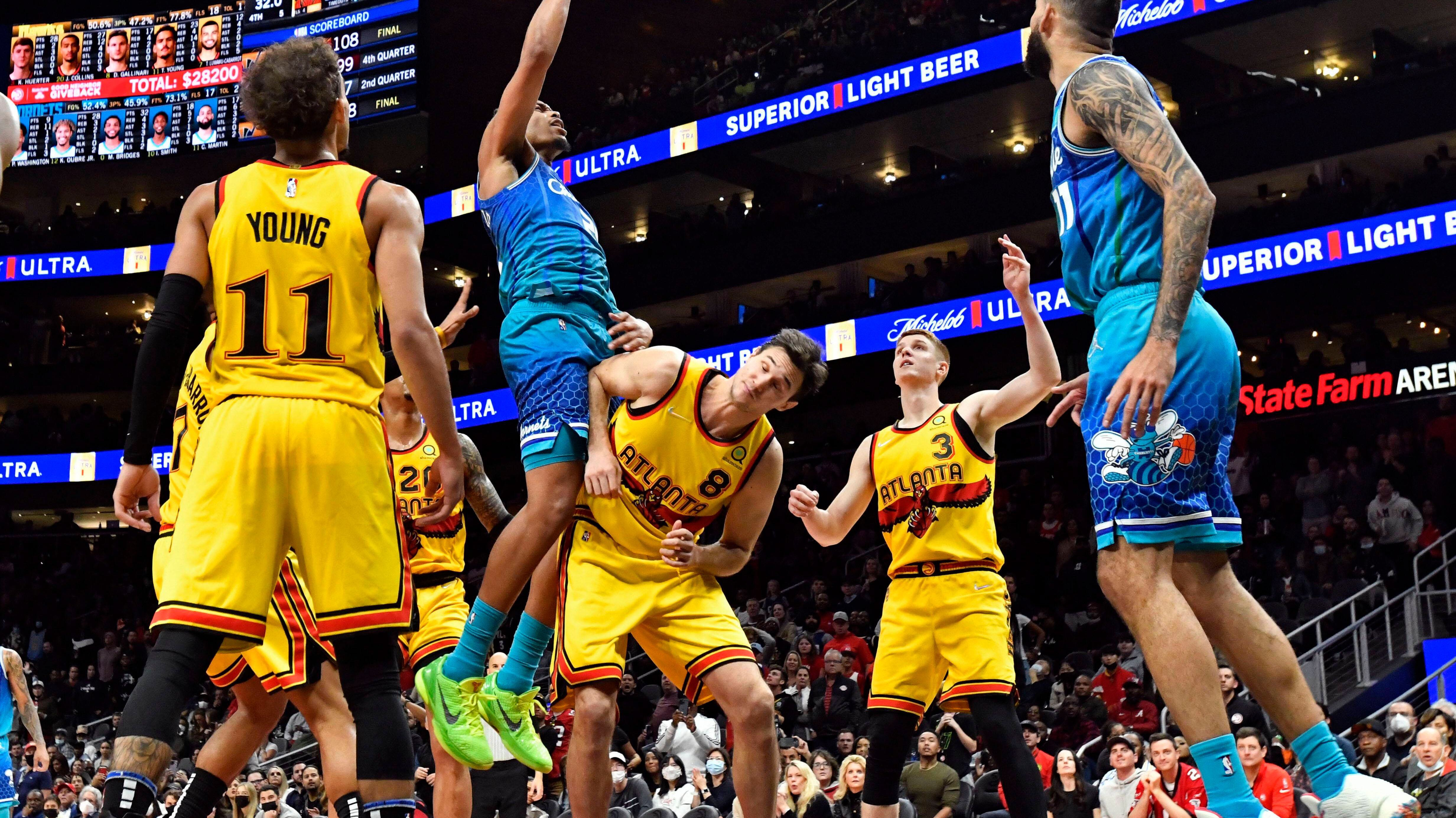 Un tiro de Trae Young con 22 segundos acortó la ventaja de Charlotte a tres puntos. Young anotó 25 puntos y su mejor registro del año con 15 asistencias.