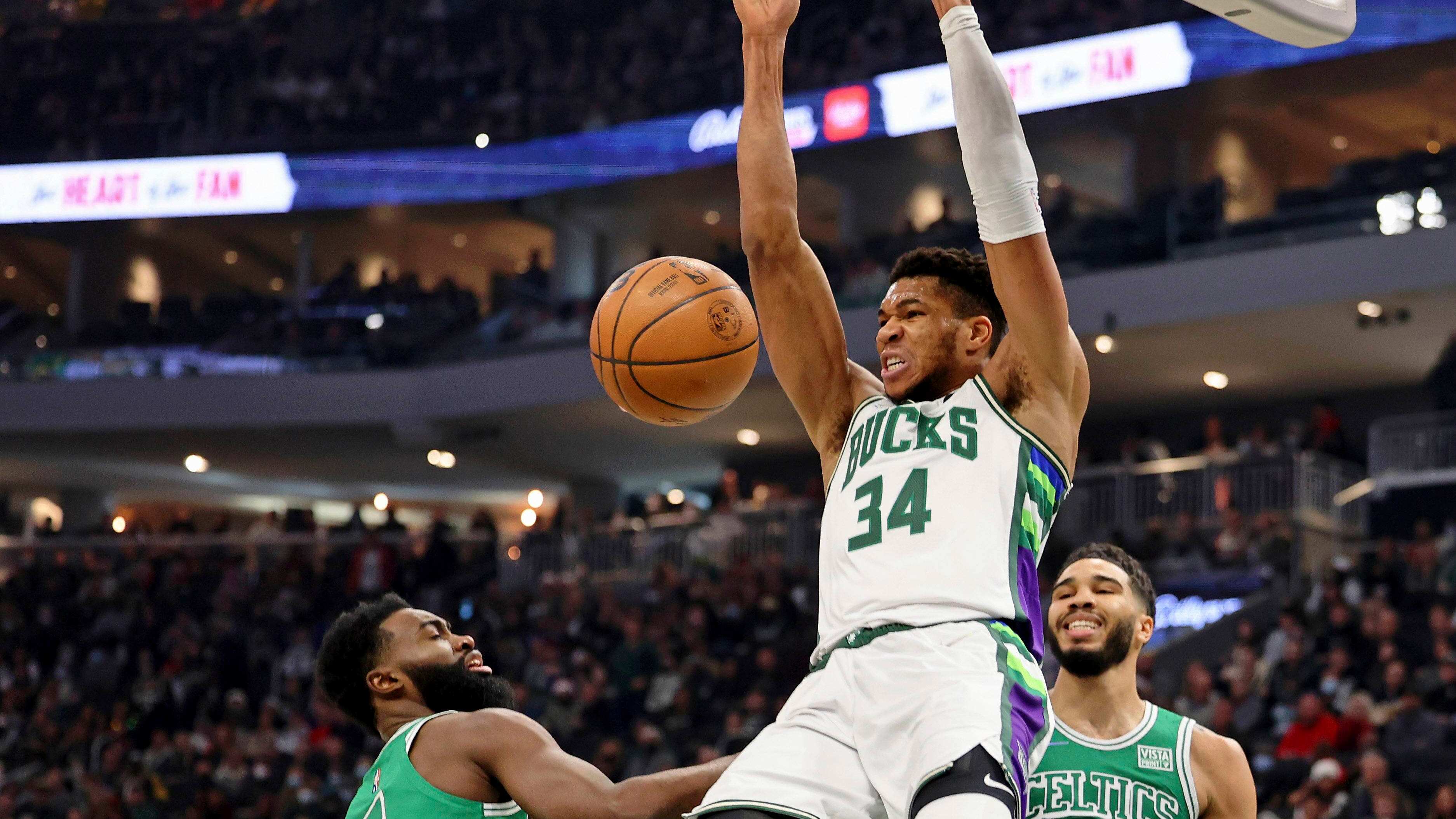 Giannis Antetokounmpo regresó tras permanecer bajo los protocolos de salubridad de la NBA y anotó 36 puntos el sábado, pero Wesley Matthews se robó los reflectores con un triple a 30,3 segundos del final y los Bucks de Milwaukee tomaron así su primera ventaja para superar 117-113 a los Celtics de Boston.