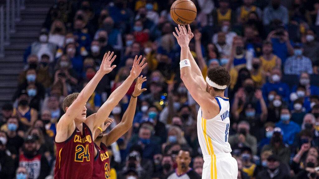 Klay Thompson anotó 17 puntos en su reaparición tras dos lesiones devastadoras que lo mantuvieron ausente por más de dos años y medio, y ayudó a los Warriors de Golden State a derrotar el domingo 96-82 a los Cavaliers de Cleveland.