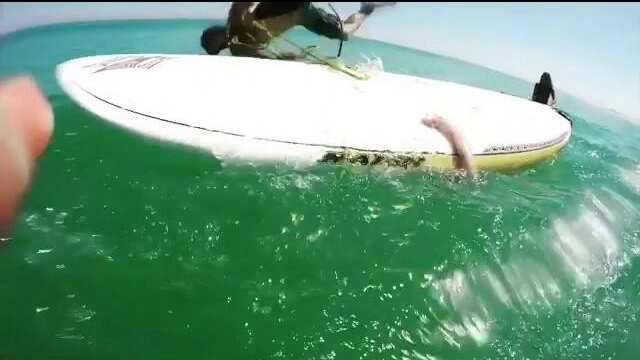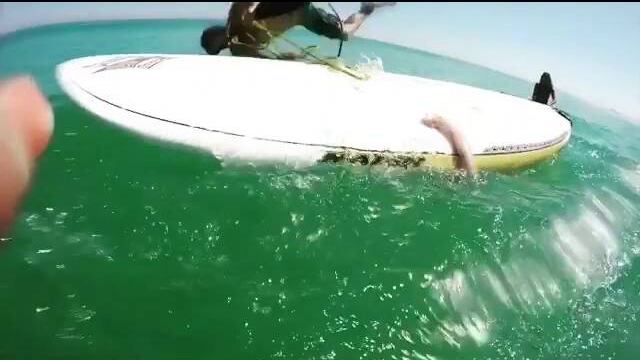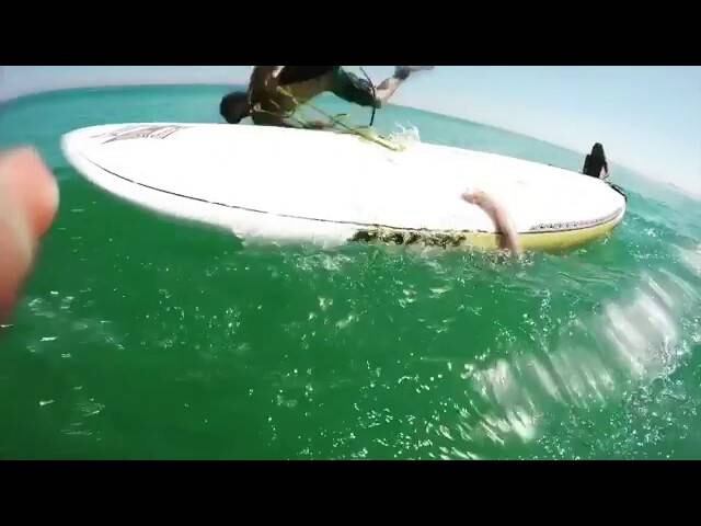 Taylor lanzó una cuerda para atar al animal e intentar ayudarlo, sin embargo, el calamar pegó sus tentáculos a la tabla empujándola y obligando al surfista a saltar.