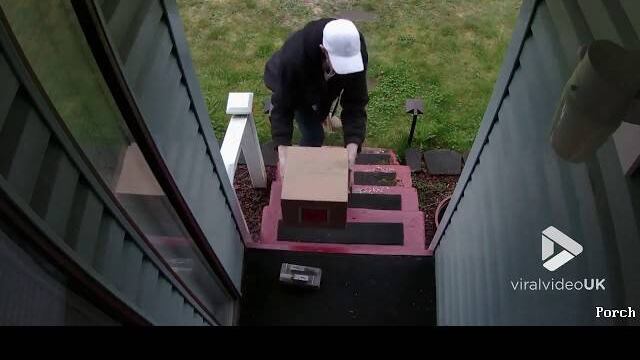 En una caja de cartón el hombre puso un artefacto que detonaba con el movimiento. Cuando el ladrón se acercó y agarró la caja se llevó el susto de su vida con la explosión, y así quedó en evidencia ante las cámaras de seguridad de la vivienda.