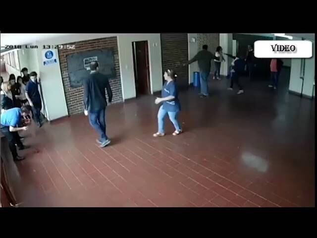 En las imágenes que se viralizaron en las redes sociales, se ve cómo poco a poco se empiezan a sumar alumnos, docentes y otros empleados estupefactos por no saber qué había provocado el incidente.