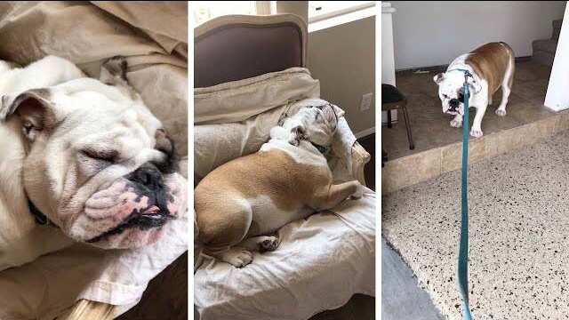 No cabe duda que nuestros amigos los animales cada vez nos sorprenden más con sus ocurrencias. En esta ocasión, un Bulldog llamado Kingston se niega a salir a pasear con su cuidadora, quien trata de despertarlo insistentemente.