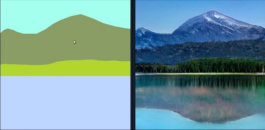 Se trata de un software de Nvidia llamado GauGAN que sorprende por sus capacidades estéticas. Concretamente es una red neuronal que puede convertir un simple dibujo en un paisaje fotorrealista en cuestión de segundos. Literalmente le toma solo unos cuantos clicks para transformar algo hecho en paint en un trabajo digno de un artista.