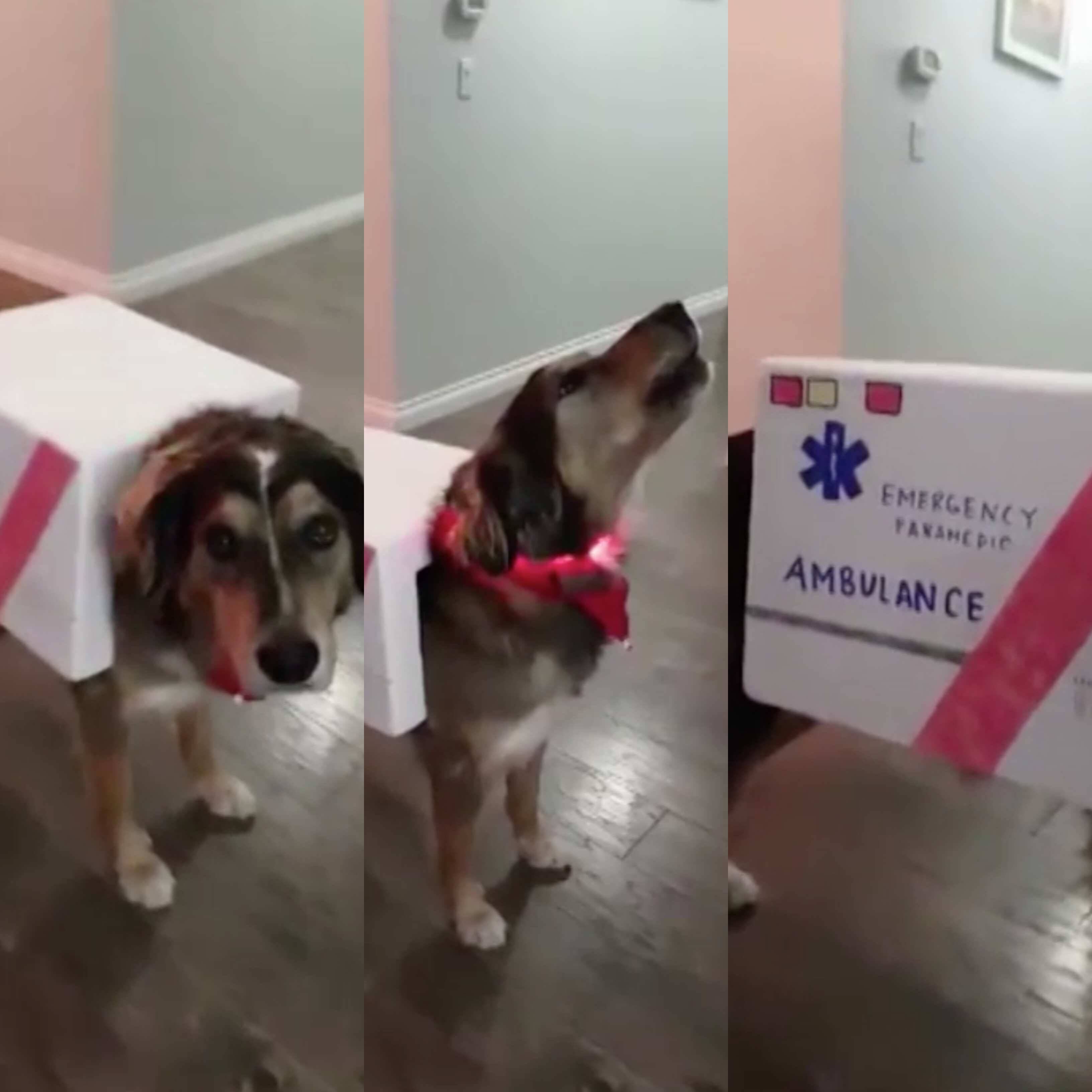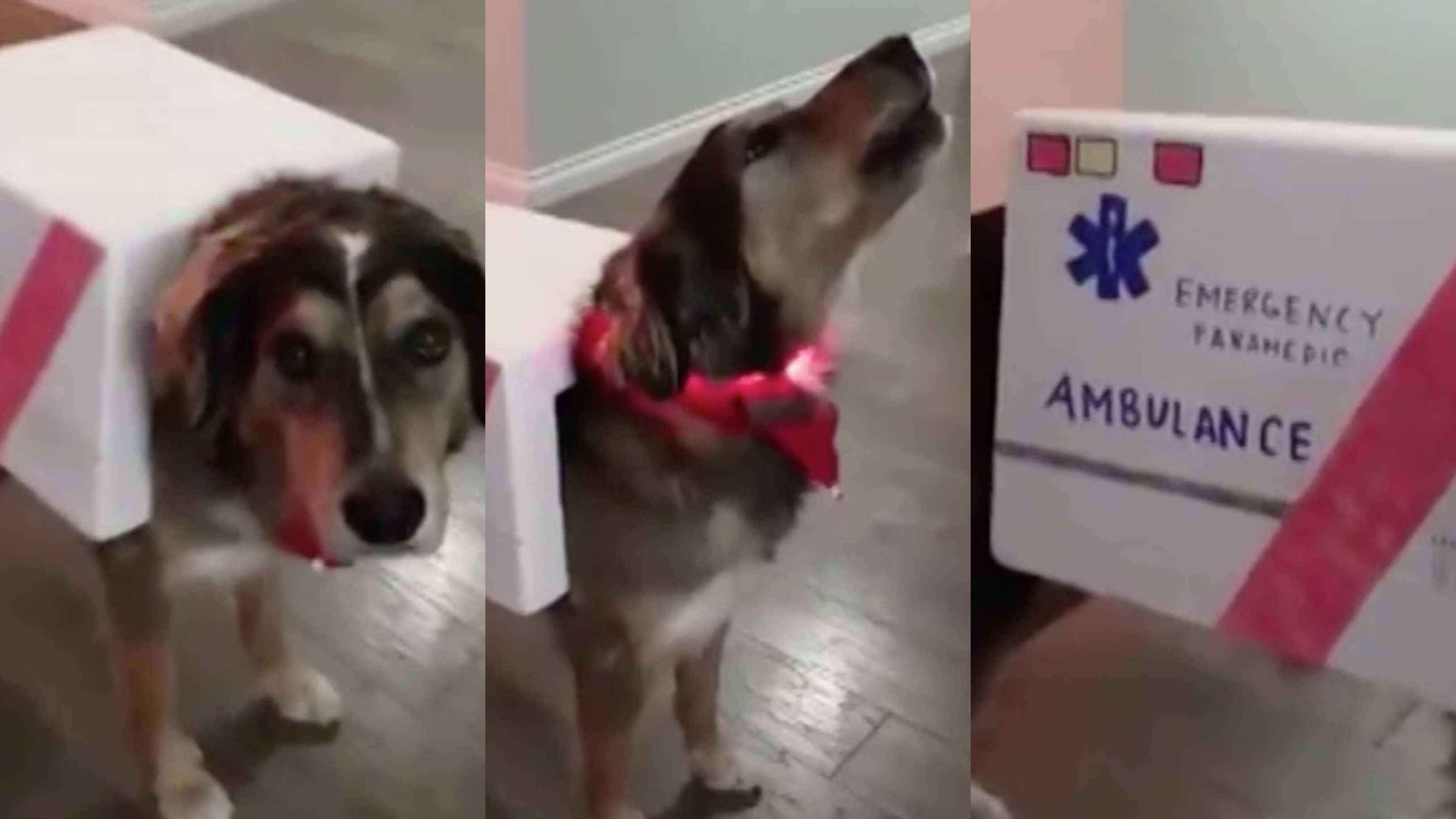 El video de un perro disfrazado de ambulancia y que emite el sonido característico de ese vehículo, se ha viralizado en los últimos días a través de las redes sociales.