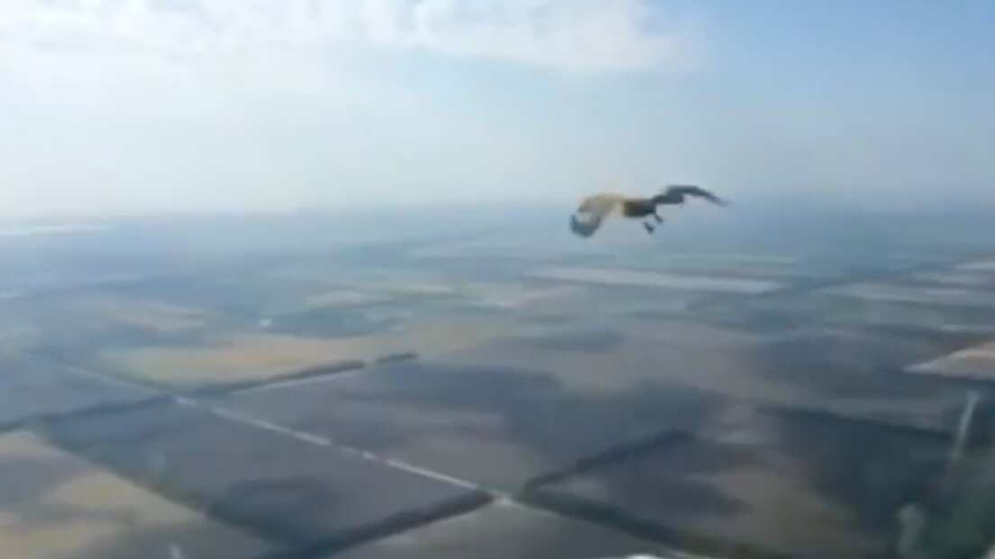 En el video se ve cómo el piloto deja caer la cámara tras el estruendo que el ave ocasionó con el choque.