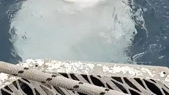 En el video grabado por un deportista se ve cómo el animal muestra sus enormes y filosos dientes cuando nada boca arriba.