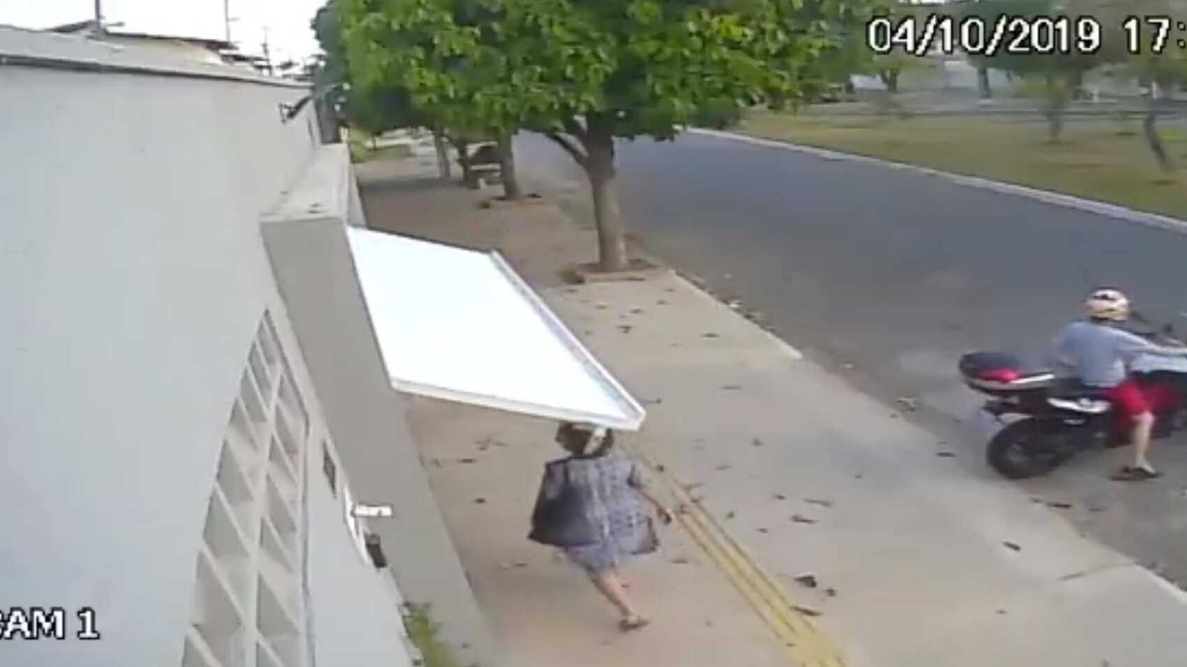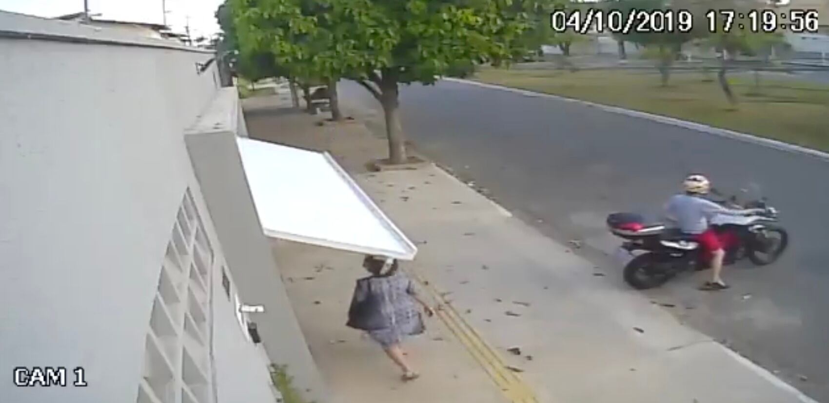 Las imágenes muestran como la motociclista sale de su casa y avance hasta media calle, razón por la cual no se percata de la presencia de la señora, quien para evitar ser golpeada en la cabeza por la puerta del garaje, comienza a agacharse hasta que involuntariamente acaba en una residencia ajena.