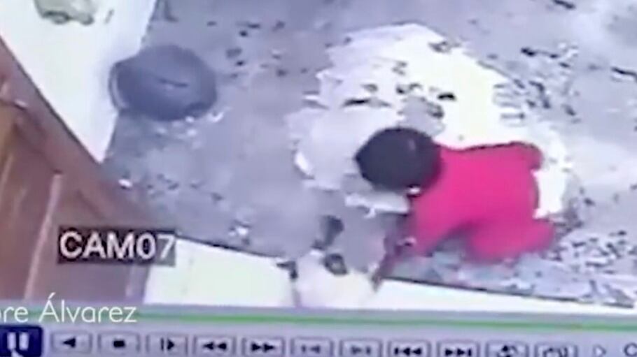 En el video se ve como el bebé gatea hacia las escaleras y la gata está descansando en un mueble, cuando el animal se dio cuenta que el niño estaba a pocos centímetros del borde reacciona rápidamente y se arroja a él.