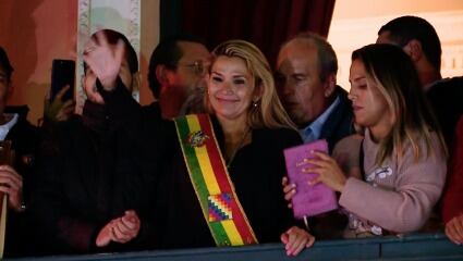 La senadora opositora boliviana Jeanine Añez, presidenta del Senado boliviano, asumió este martes la presidencia interina de Bolivia en La Paz. “Ante la ausencia definitiva del presidente y vicepresidente, como presidenta de la Cámara de Senadores, asumo de inmediato el cargo de presidenta del Estado”, anunció Añez, recibiendo aplausos de los parlamentarios de la oposición.