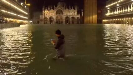 Las imágenes muestran a los residentes locales y a los turistas abriéndose camino en la inundada Plaza de San Marcos.