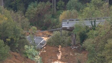 Un deslizamiento de tierra provocó el domingo el derrumbe de una sección de 30 metros de un puente de autopista cerca de la ciudad italiana de Savona, mientras que la lluvia torrencial sigue causando estragos en el norte del país.